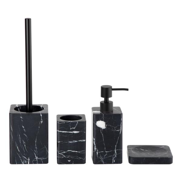 4PCS Nature Marble Bathroom Accessories Set Square Shape With Eased Edge Black With White Veins Lotion Pump Images |